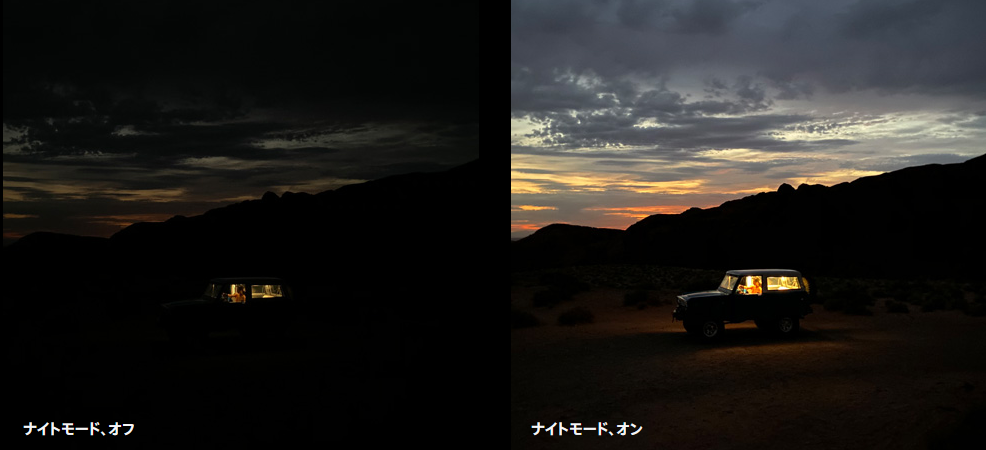 ナイトモードを利用することで、暗い場所でもきれいな写真を撮ることが可能になっている。