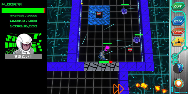 ただし、ゲームとしてはローグライクを基軸としており、プレイヤーが操作しなければゲーム内の時間は停止し、プレイヤーが自機を動かすと、動かした時間と同じだけ敵も動く。これにより、通常時はシューターアクションのように爽快に敵を撃破し、ピンチの時はじっくり考えて遊べる。