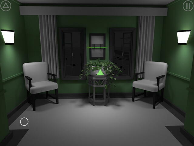 ゲームシステムを紹介する案ら、気になる場所を調べて(調べられる場所を視点の中心に持ってくると、▼のカーソルが出るので反応する場所はわかりやすい)、アイテムを入手して、適切な場所で使う普通の脱出ゲームでしかない。