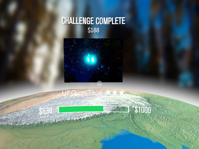 そして一定額を貯めると次のステージが解放され、“日本行きの飛行機で見たUFO”だとか、“エジプトのピラミッドに隠されたエイリアンの秘密”など、世界の各地で写真を撮れる。
