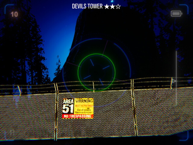前作はiPhoneのカメラを天に向けると青空を認識してUFOを映し出し、プレイヤーは不規則に動くUFOを撮影し続けるというシンプルなARゲームだった。