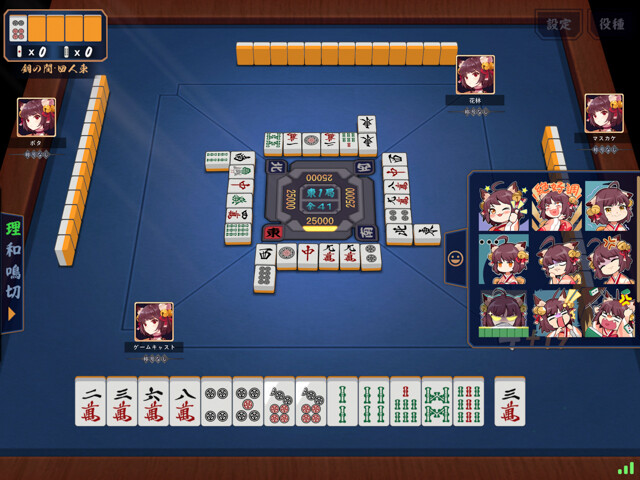 ゲームとしてはパートナーキャラクターが充実していることが特徴で、パートナーキャラクターを選択すると麻雀中にエモートスタンプを使えて、リーチなどの宣言の声もそのパートナーのものに。
