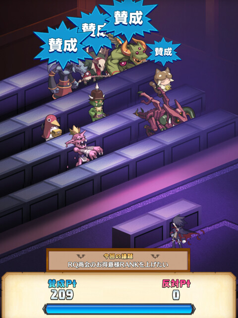 これは1日に100ptしか使えない議会Ptを消費して「キャラを改名したい」とか「経験値を1.5倍にしたい」とか、システム的なチート・ムチャを通して実現するシステムだ。
