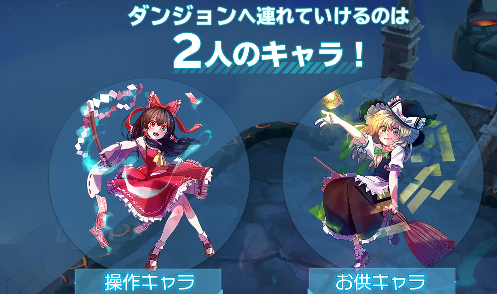 ゲーム内には東方Projectでおなじみのキャラクターが登場し、それぞれ攻撃スタイル・パラメータ・ダンジョン内で獲得するスキルが異なるように設定されている。
