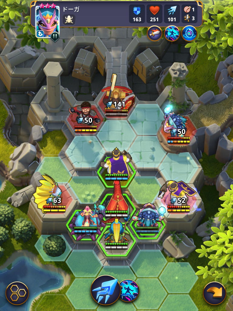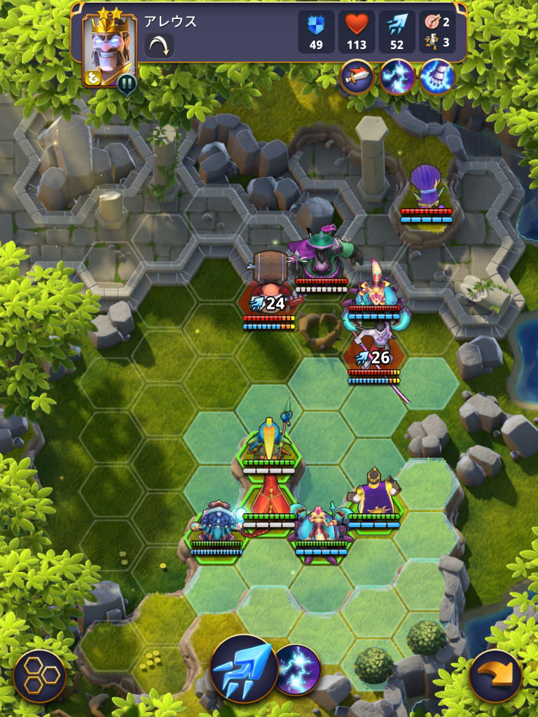 敵のやりたいことを邪魔する配置、プレイヤー側が良い形でスキルを決められる配置、それらをバランス良く考えてユニット配置するのが悩ましくも楽しい。
