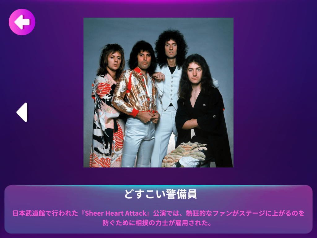 さらにさらに、楽曲ディスクには Queen の映像や豆知識が封入されており、これを集めて眺めるのもまた楽しい。