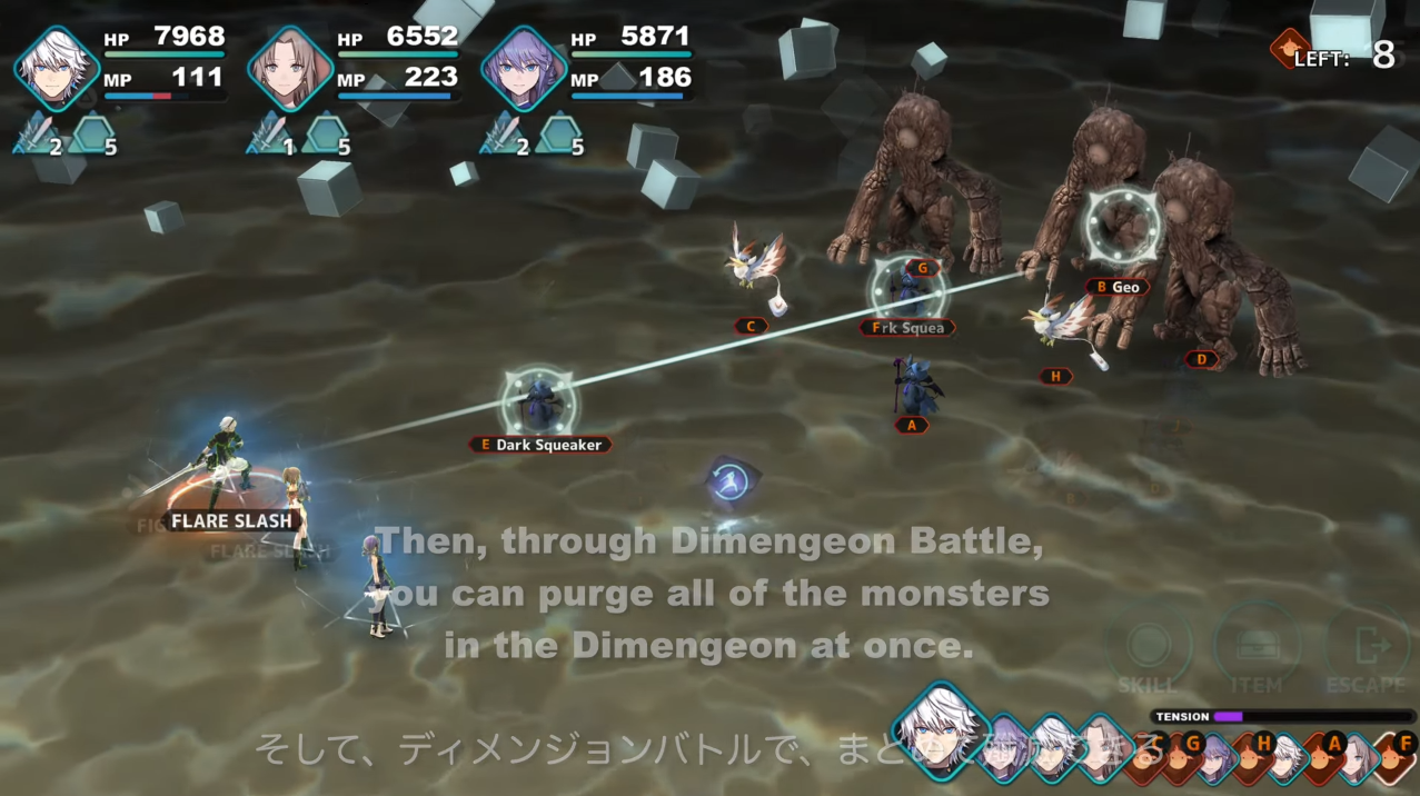 が、“ディメンジョン・システム”と呼ばれるものを使用するとエンカウントした敵を異次元におくってため込むことができ、好きなときにまとめて戦える。