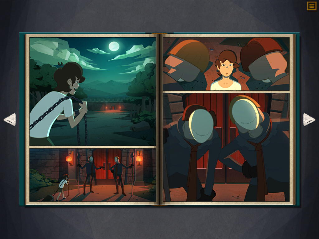 これをタッチすると過去の回想シーンへ(過去に戻るので、左にページを読み進める必要がある)。