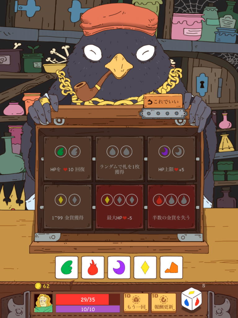 強力なカードを持つだけでなく、運が悪いときのフォローも含めた戦術が必要な”運をコントロールするローグライク”として、このジャンルのなかでもまた少し新鮮な気持ちで楽しめる。