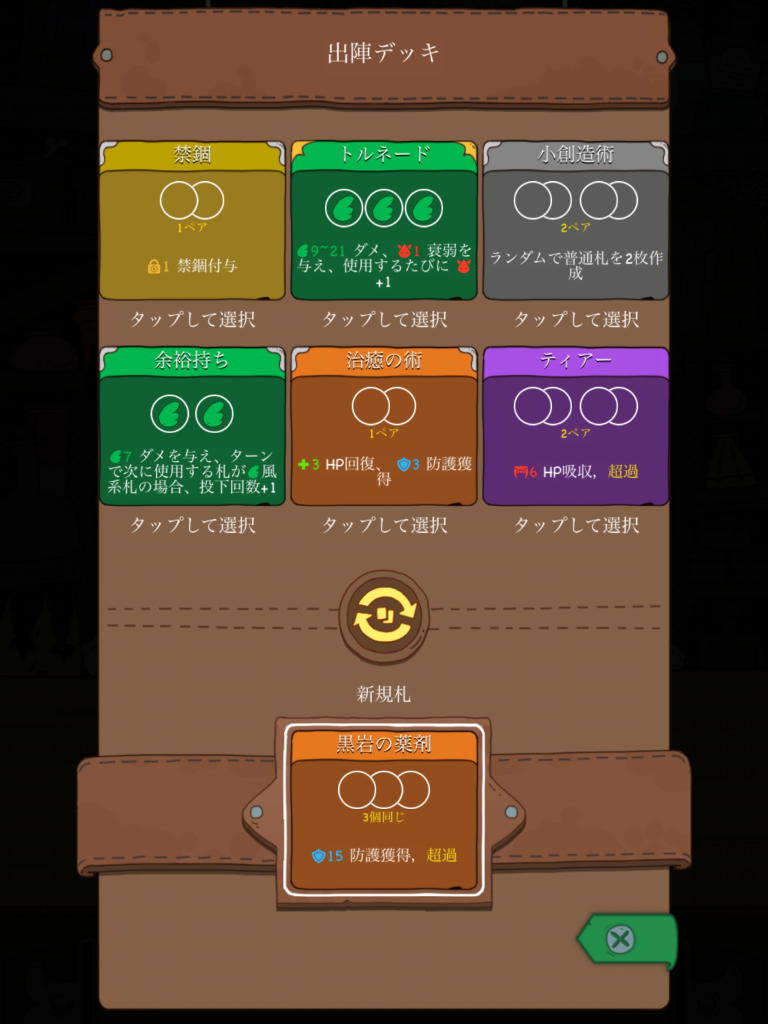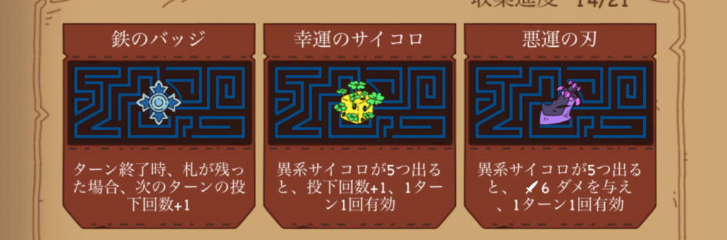 運に左右されるカードデッキのリスクヘッジに使っても良いし、うまく戦略がハマったときに大爆発するような博打装備もでき、このバランス設計がまた楽しい。