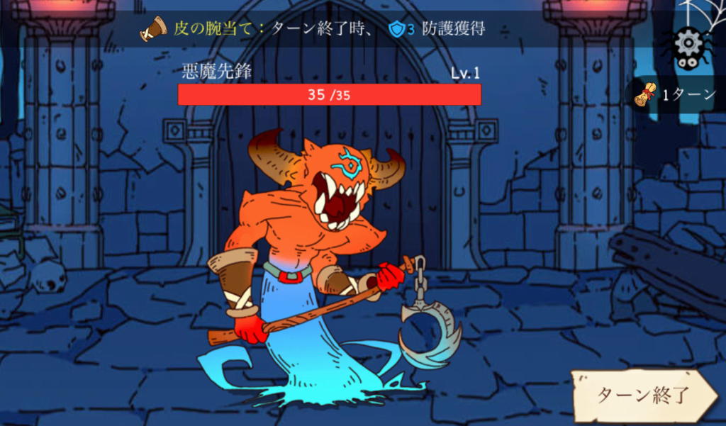 そしてサイコロ振り直し回数が尽きるか、 スキルカードをすべて使い終える化してターンが終了すると敵の行動が始まる。