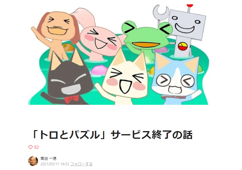 本作も含めて『どこでもいっしょ』シリーズを開発してきたビサイドの社長、南治さんのブログに掲載された「トロとパズルサービス終了の話」によると、提供できる期間は「もうちょっとだけ」とのことなので、早めに遊んでおくと良いだろう。