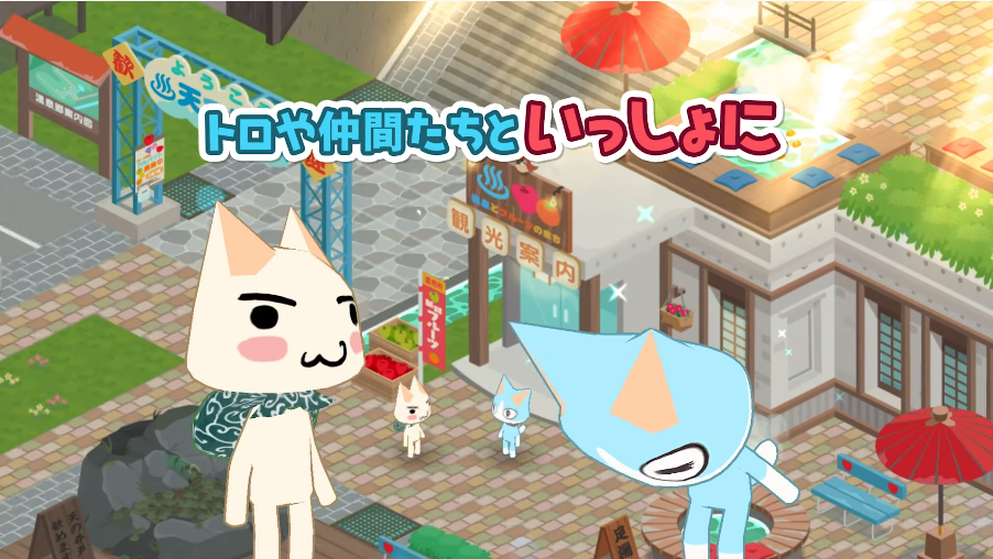 本作はトロや仲間たちとの会話しつつ、さびれた温泉街を復興させるゲーム。