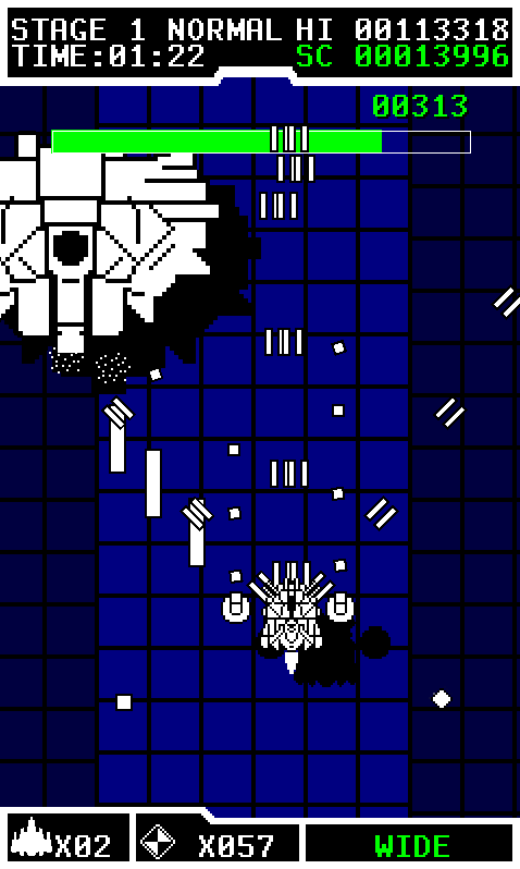 自分としては、どうすればシューティングゲームを作れるか試作したものでした。ボスを複数のパーツで構成して部位破壊を実現するとか、戦車の砲塔を回転させて自機を狙うにはどうすればいいか、とか。