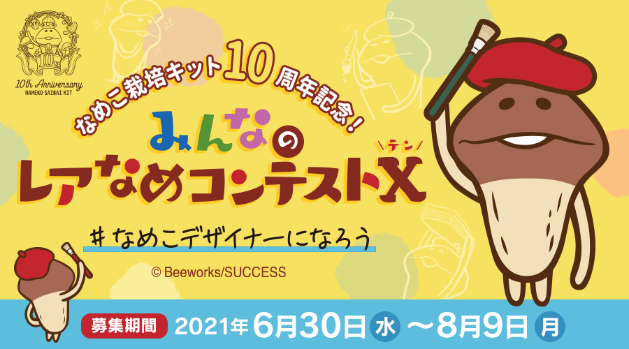 同時に、レアなめこのデザインをユーザーから募集する企画『みんなのレアなめコンテスト X(テン)』も開催。
