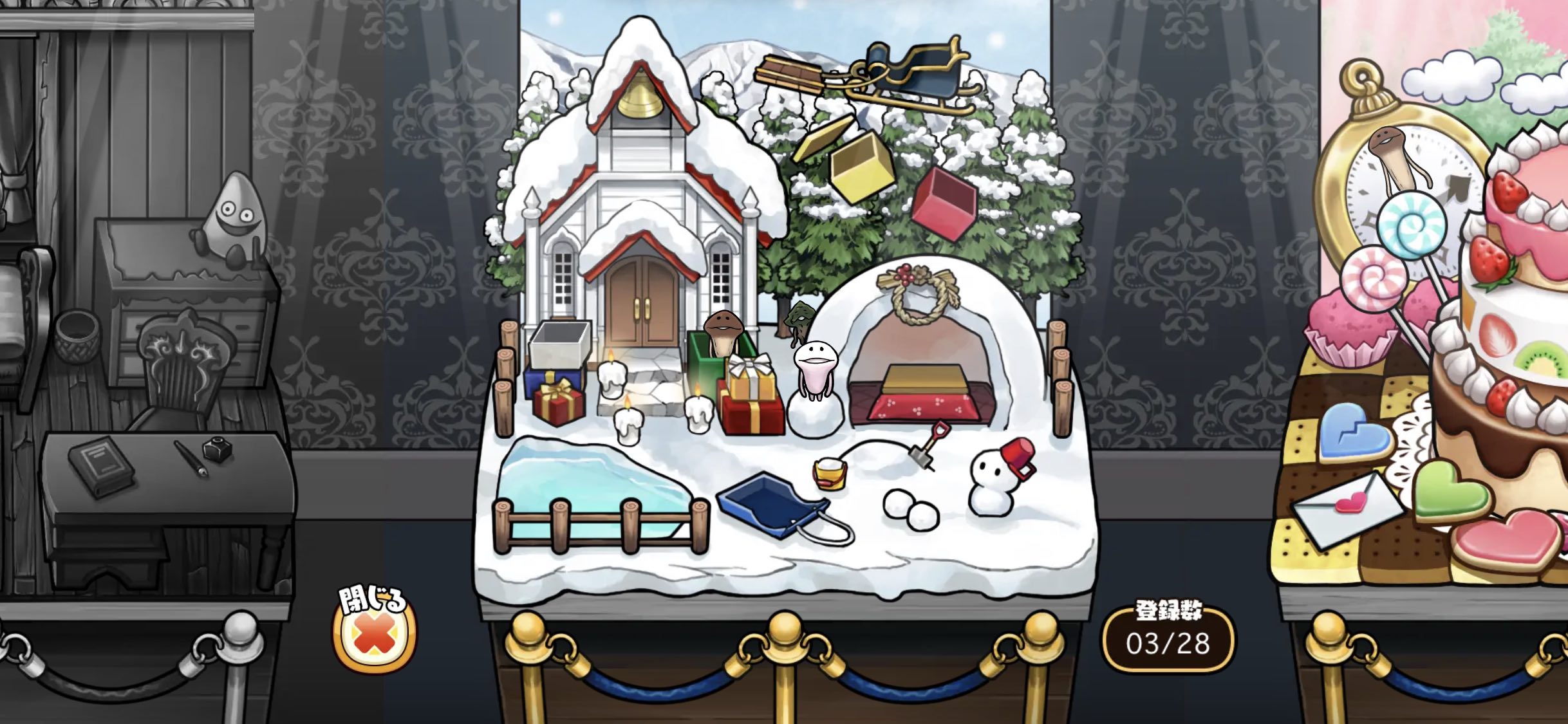 ▲なめこを集めると博物館という名の箱庭を眺められるおまけも!