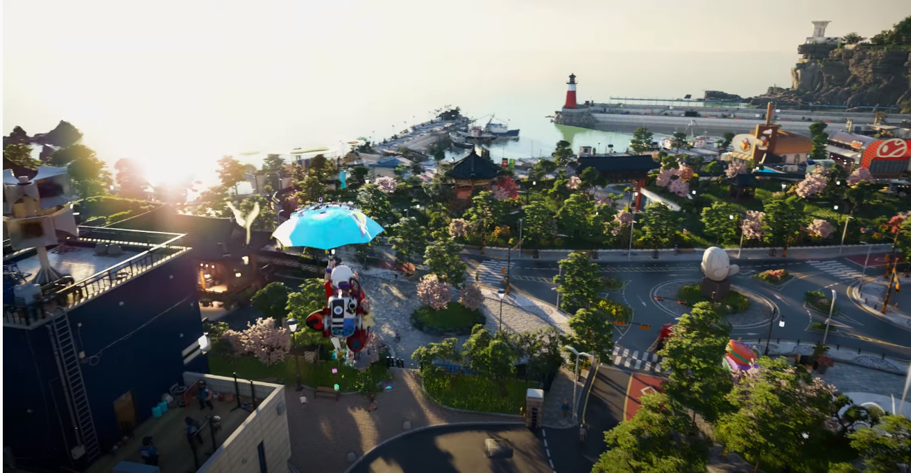 PV ではプレイヤーは子供のキャラクターを操作しており、ローラースケートで滑ったり、傘で空を飛んだり、様々な手段で楽しそうに移動している様子が見て取れる。