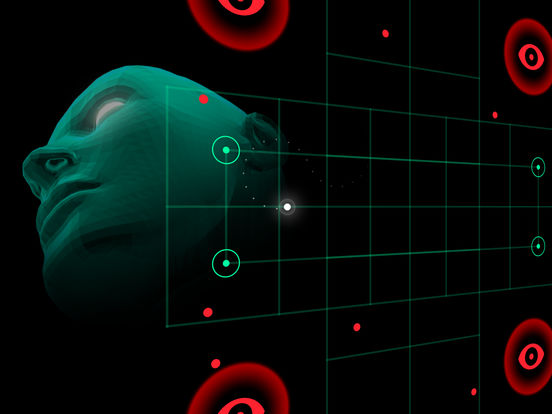 ビジュアル化された電子世界を移動し、アナログスティック移動で赤い障害を避けてチェックポイントを通過するだけのゲーム。