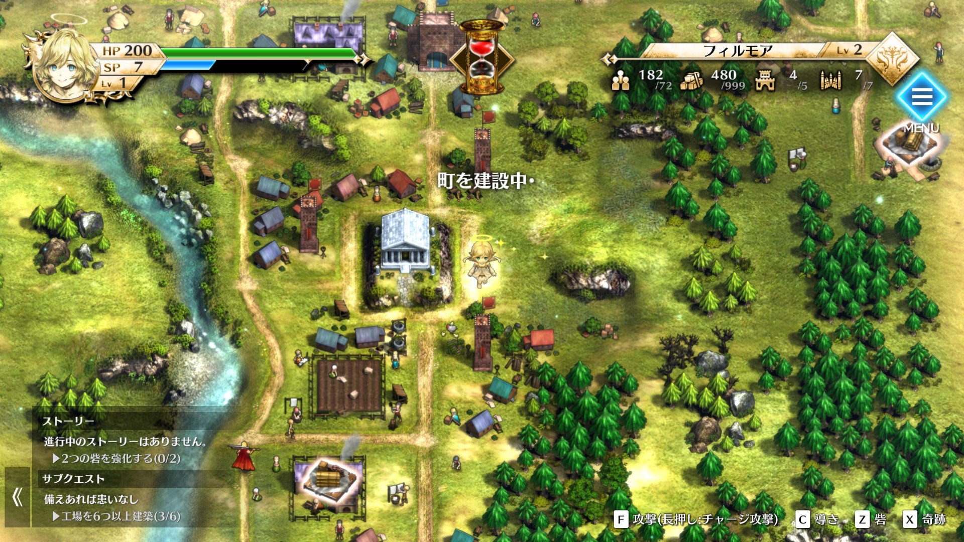 魔物が攻めてきたとき天使は何もできず、人間たちの町に配置された砦、そして人間たちの中で強力なユニット“英雄”に指示を出し、神も雷などの奇跡を使って魔物と戦う。