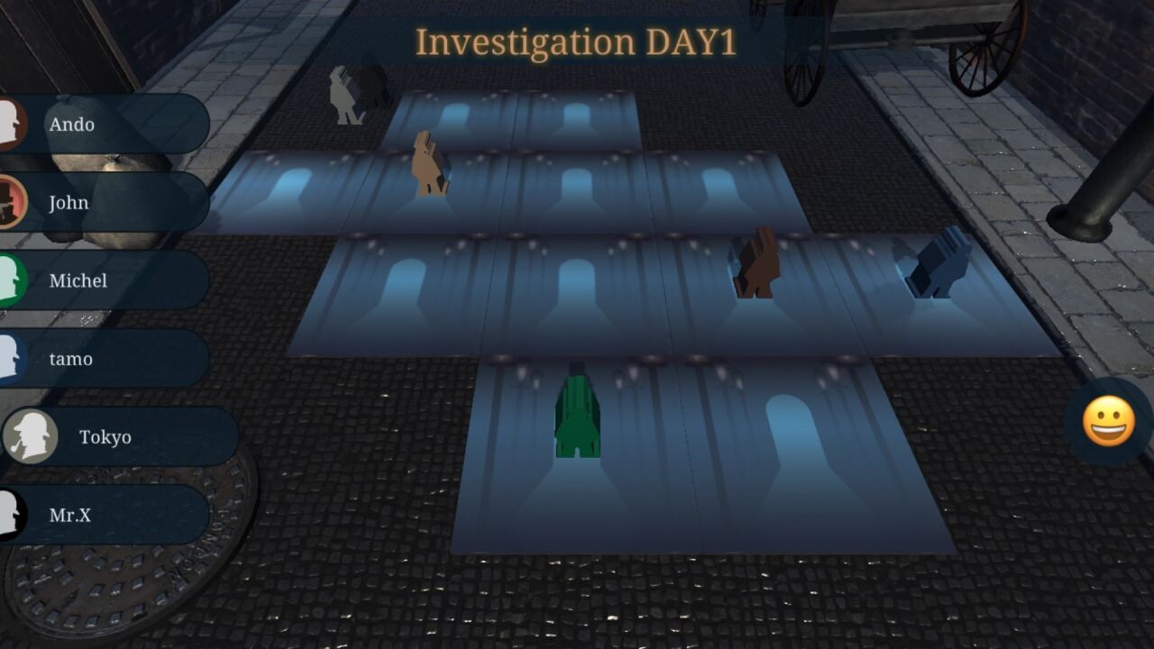 殺人現場と、各プレイヤーの位置から探偵側はヒントにジャックを割り出せるわけだ。