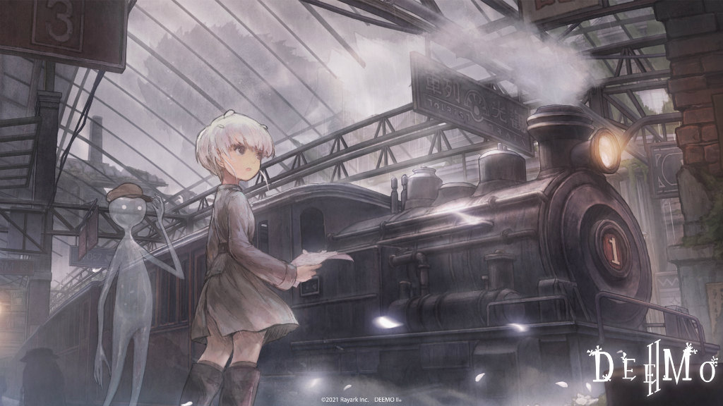 本作は世界的ヒット作でもあるリズムゲーム『DEEMO』の続編で、雨で濡れた物に白い花びらが咲き、そのまま消失してしまう“虚空の雨”が降る世界で、様々な人が集う駅を舞台に物語が展開する。
