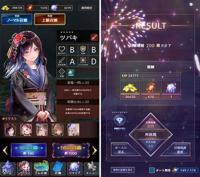 また、ガチャはあるが企業製のソーシャルゲームよりはるかに相場は安く、天井は50回となっているのでお手軽に富豪プレイをすることも可能。