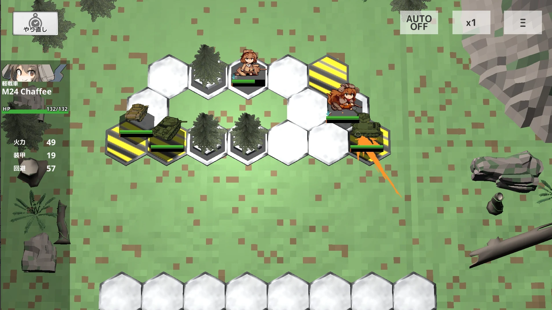 バトル時はへクス型のマップにキャラクターを配置するとAI操作で自動でバトルが行われる。