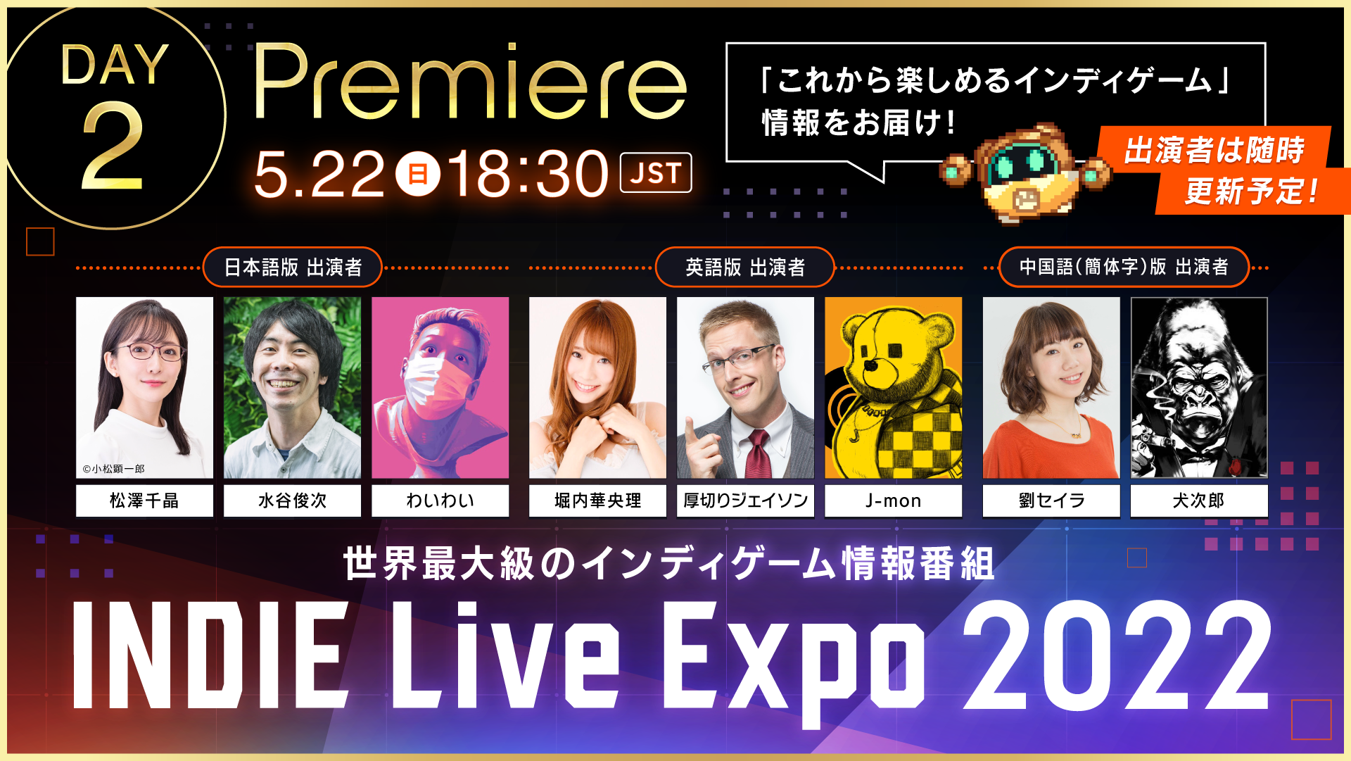 ※中国語、英語の視聴ページについては、公式サイト(https://indie.live-expo.games/)で。