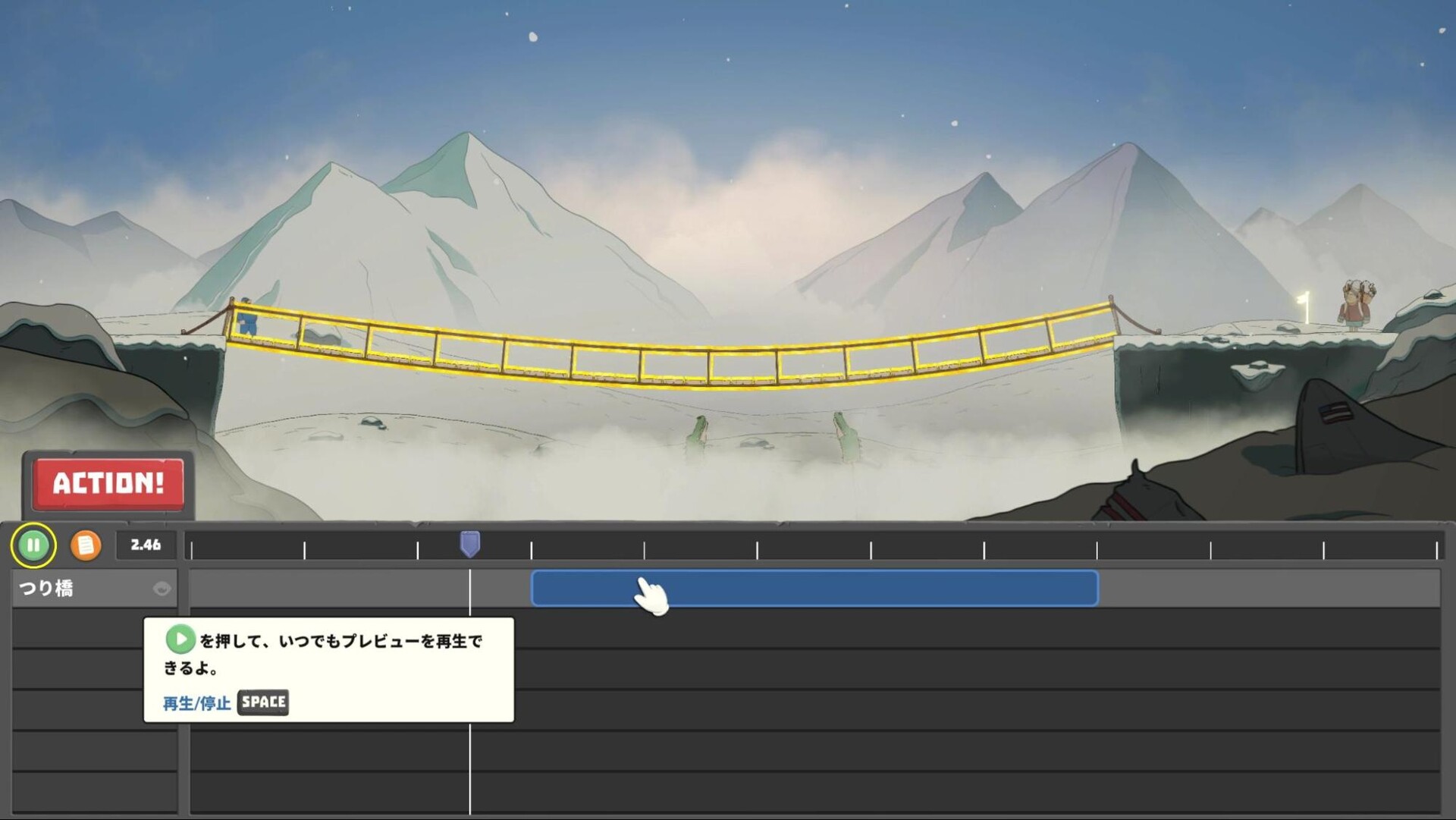 上記のスクリーンショットであれば主人公が渡ろうとしているつり橋が落ちてしまう。