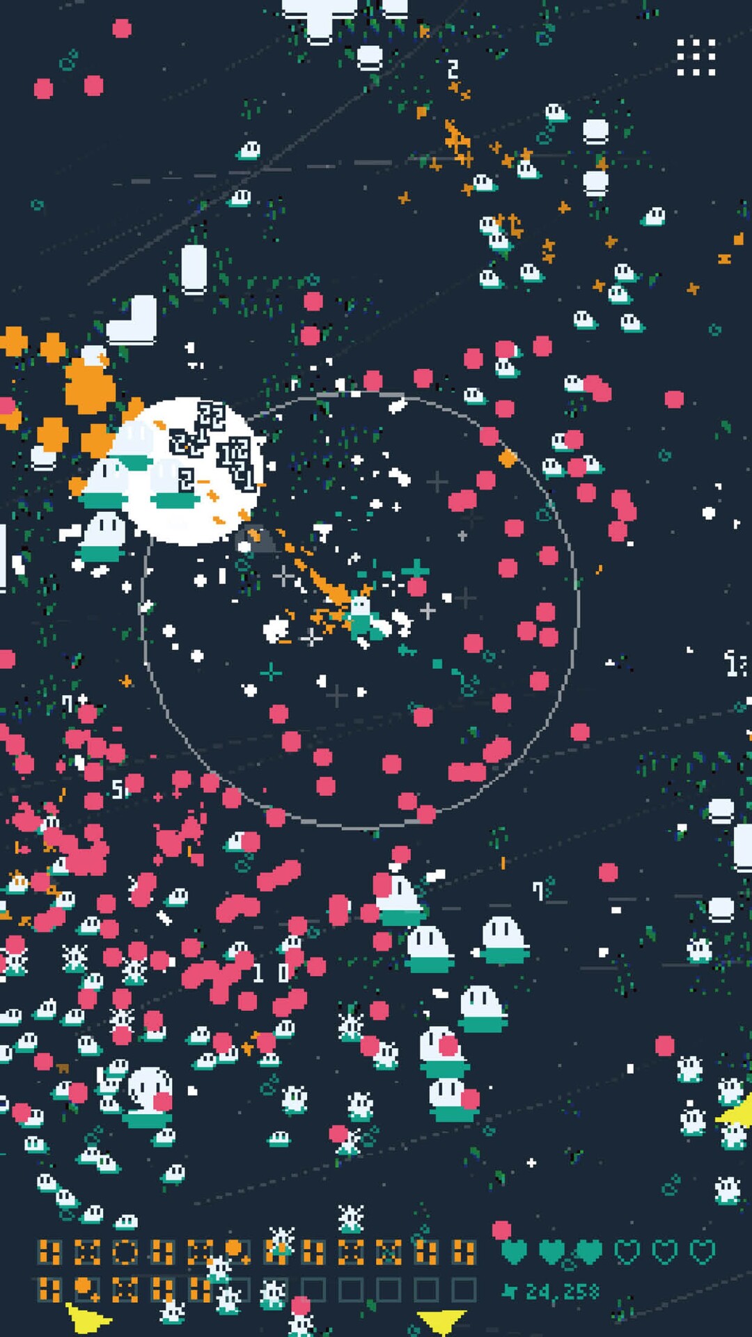 主人公の周囲にある円内に敵を捕らえると、自動で銃を乱射する移動+オート射撃のゲームとなっている。