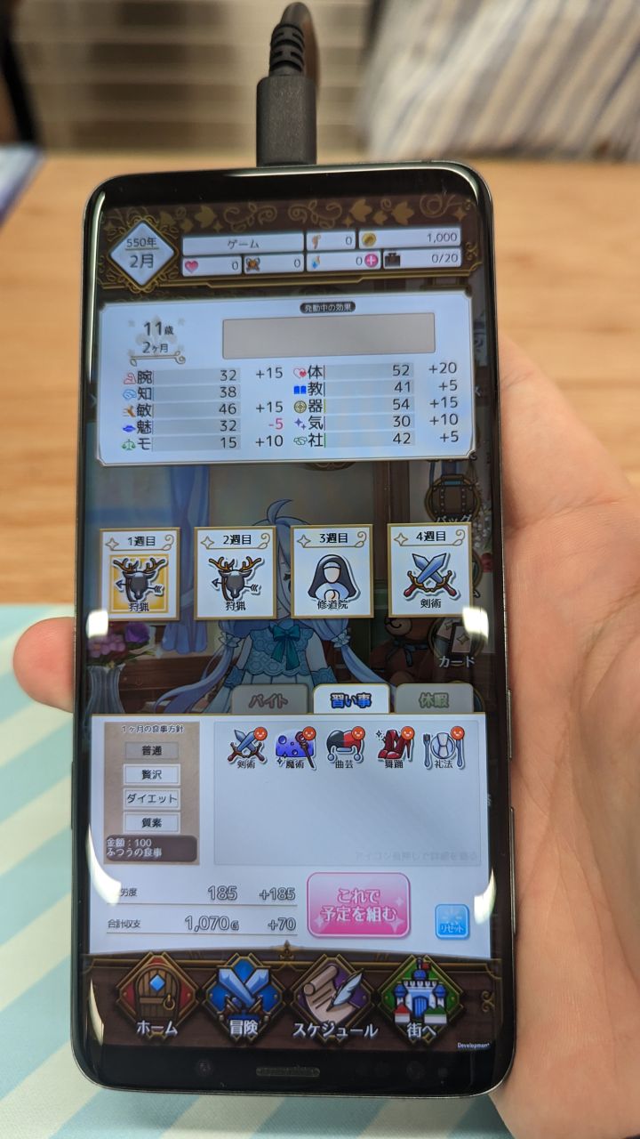 狩りをさせていれば腕力が高く粗雑な娘になっていくし、優雅な習い事をさせていけば魅力が上がっていくが体は弱いまま。無茶なスケジュールを組めば娘は倒れてしまう。