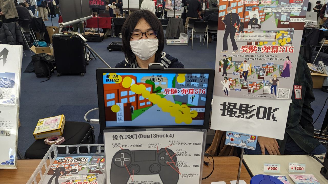 2023年3月25日に大阪は梅田スカイビル10Fで行われたゲーム展示会『ゲームパビリオンJP』に展示されていたユニークな弾幕シューティング『闘う受験生 Entrance Exam』を紹介する。