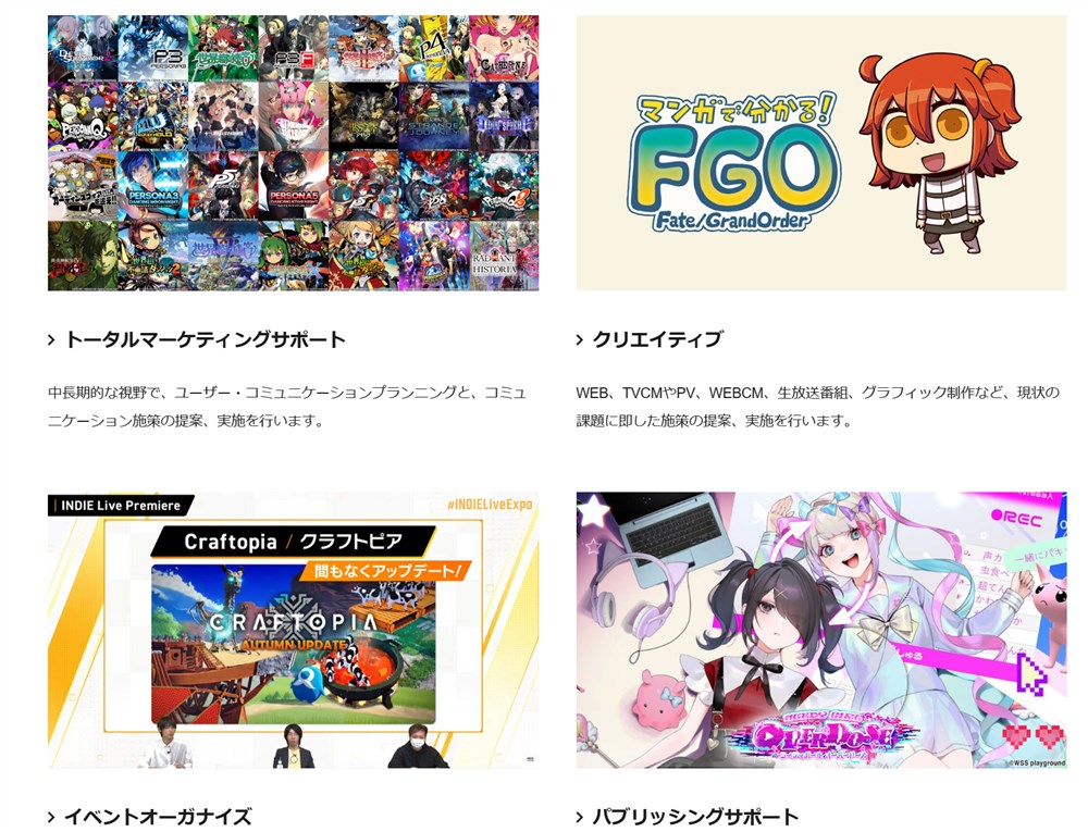 インディーゲームにおいても、全世界100万本販売を達成した「NEEDY GIRL OVERDOSE」のパブリッシングサポート、日本最大級のインディーゲーム情報番組「INDIE Live Expo®」の主催・放送を務める会社として業界では名高い。