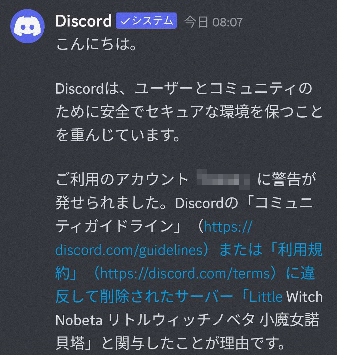 さらに、『リトルウィッチノベタ』公式Discordの参加者にも警告が送られて話題になっている。